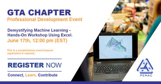 PEMAC GTA Chapter invites you to join them for its next professional development event. Bring your lunch and gain insights from a hands-on machine learning example utilizing a basic algorithm in Excel.