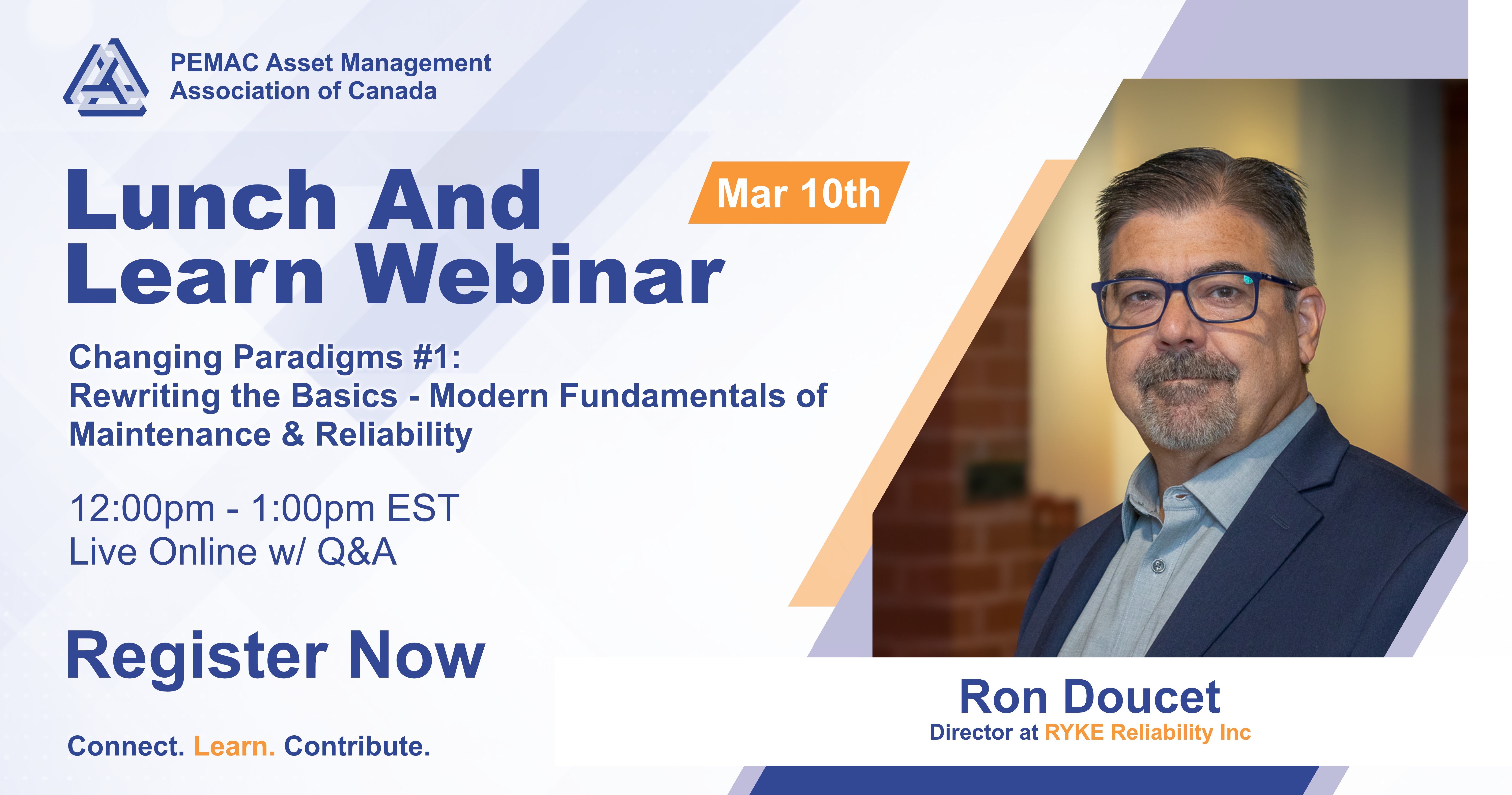 Ron is an active instructor in the PEMAC Maintenance Management Professional program and is on the PEMAC board of Directors.