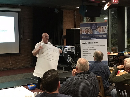 It was an informal evening with an overview of PEMAC, introductions of the executive and all in attendance. The main theme of the event focused on the importance of data management, and the challenge to capture knowledge from organizations before it is gone, as well as trusting your condition monitoring data! There was an “Open Mic” for those who wanted to share their “war-stories”, and attendees were entertained by a few good stories that many could relate to.